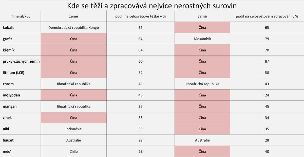 Ke změně energetiky a dekarbonizaci dopravy jsou potřeba minerály a kovy, nad jejichž těžbou a zpracováním drží kontrolu především Čína. Evropské unii tak hrozí, že až se vymaní ze závislosti na ruském plynu, padne do náruče další nevyzpytatelné mocnosti.