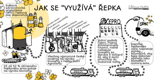 Infografika: Jak se řepka využívá. Zdroj: Poskytnuto tvůrci projektu Biomasakr.cz