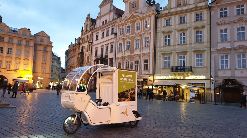 Rohlík od prosince testuje v Praze už druhý typ elektrokol a snaží se udělat tento způsob přepravy co nejjednodušší. Kolo uveze nákupy až do hmotnosti 180 kilogramů plus kurýra, dojede až čtyřicet kilometrů.