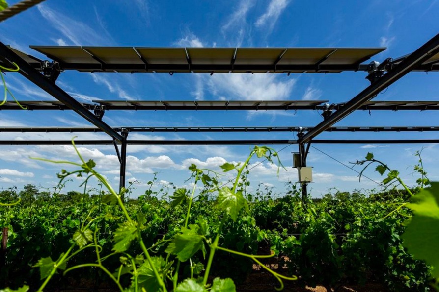 Jedním z experimentů Sun’Agri jsou solární panely umístěné na vinici o rozloze 4,5 hektaru ve vinařské oblasti Piolence v Provence. Dosavadní zkušenosti podle společnosti ukázaly, že vinice částečně zastíněná solárními panely je odolnější vůči horkům. Potřeba závlahy vinice klesla v rámci experimentu o dvanáct až 34 procent a hrozny měly o devět až čtrnáct procent více kyselosti.