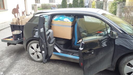 Nicméně s tím, jak se neustále posouvalo dodání prvních kusů, přičemž nebylo možné se ani na auto kdekoliv podívat naživo, natož si jej vyzkoušet, jsme začali hledat alternativy – Kia eNiro by splňovala většinu požadavků, ale dodací lhůty byly dlouhé, Kona měla divný interiér. Tesla 3 sice jezdila skvěle a moc se nám líbila, ale pro naše potřeby nebyla moc praktická (obtížný přístup do kufru, nízký posez). Jaguar byl příliš „nóbl“ a příliš velký, Citigo/UP zase příliš malá autíčka. Zbylo nám léty prověřené BMW i3, pro který jsme navzdory informacím od importéra našli certifikované tažné zařízení (bez možnosti přívěsu).