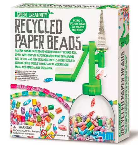 Máte doma nepoužívané noviny, časopisy či staré knihy? Tak z nich si mohou děti vyrobit pomocí přístroje barevné korálky. Stačí malá chvíle a budou mít spoustu originálních korálků k dalšímu tvoření. Hotové korálky lze pro zpevnění přelakovat.