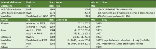 Jádro se loni v létě stalo horkým tématem španělských parlamentních voleb. Na postupném odstavení elektráren se s jejich provozovateli dohodla již předchozí vláda v roce 2019, ovšem bez stvrzení finálních datumů a dalších detailů.