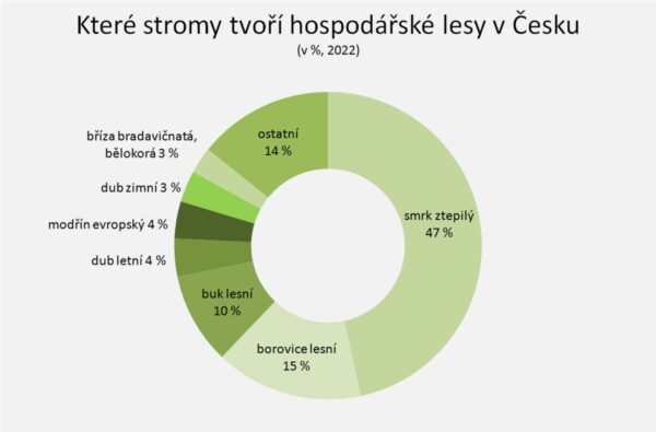 Pokud se dnes půjdete projít do lesa určeného k produkci dřeva, uvidíte v drtivé většině hustě osázenou plochu stejně starých stromů jednoho nebo několika málo druhů, mezi kterými bude jednoznačně dominovat smrk ztepilý. Zabíral totiž předloni 46,5 procenta plochy hospodářských lesů. Právě kvůli tomu jsou tuzemské lesy podle odborníků tak citlivé na vnější vlivy.
