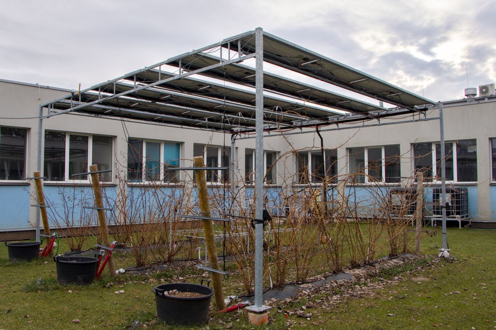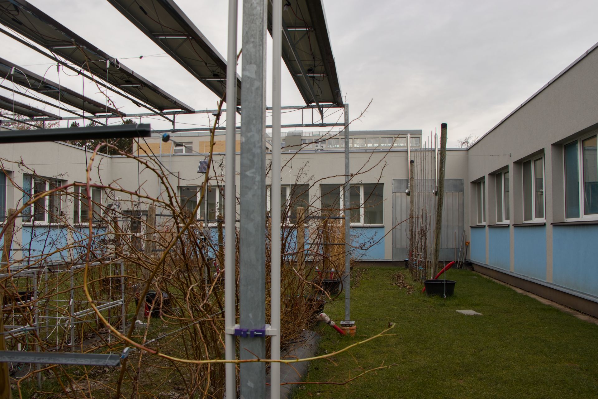 U menší výsadby, jako je tato, je vliv fotovoltaických panelů na mikroklima omezený, zejména kvůli umístění ve dvoře. U větších ploch už lze předpokládat ochranný efekt, například proti jarním mrazíkům. Z našeho stávajícího výzkumu to ale nedokážeme určit.