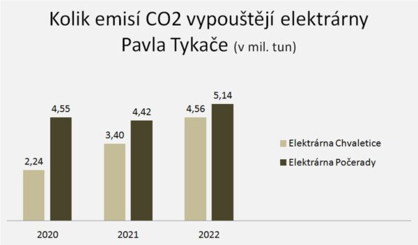 Uzavření dvou uhelných elektráren miliardáře Pavla Tykače není jen údajnou hrozbou pro energetickou stabilitu Česka, ale také významnou úsporou emisí oxidu uhličitého. Tyto elektrárny totiž stojí za skoro desetinou emisí CO2 celé země.