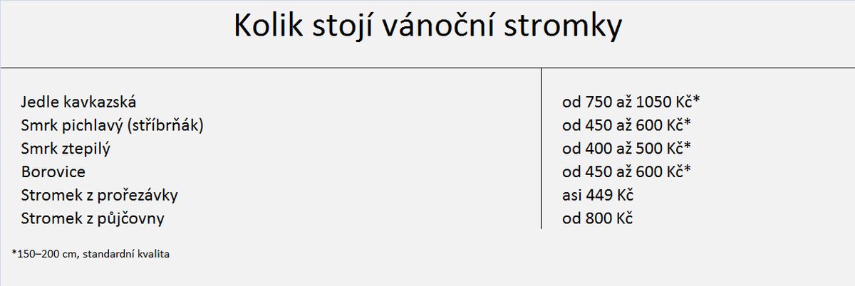 Zdroj: Sdružení pěstitelů vánočních stromků; Pujcovnastromku.cz, Cirka.cz