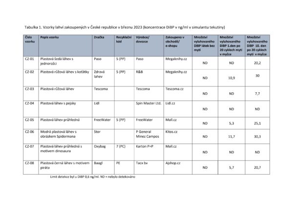 Nevládky zkoumaly 39 typů lahví na vodu a to, které chemické látky se dostávají do tekutiny – simulantu kyselého nápoje. Celkem se dělala analýza na 36 chemikálií běžně vyskytujících se v plastech. Ukázalo se, že ve více než polovině lahví se vyskytuje škodlivé změkčovadlo DiBP (di-isobutylftalát). Děti ho přijímají, když z láhve pijí.