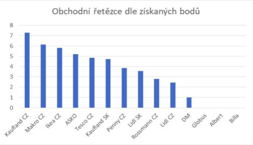 Ze srovnání na metr čtvereční prodejní plochy či na tržby vede slovenský Kaufland, který má nejnižší uhlíkovou stopu.