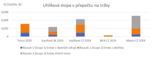 Data o tom, kolik emisí CO2 vytvořily, však publikuje jen málo společností. Ze čtrnácti oslovených řetězců pouze Kaufland a Makro zveřejňuje emise v kompletní sestavě, která má nejvyšší vypovídací hodnotu, tedy za tak zvaný Scope 1,2,3 (zjednodušeně jde o emise z vlastních zdrojů, z elektřiny, emise třetích stran např. dodavatelů).
