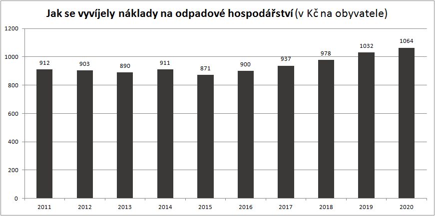 Tuzemská obec zaplatila v roce 2020 v průměru za nakládání se směsným komunálním odpadem 1064 korun na obyvatele. Náklady na sběr, svoz a likividaci představují pro obce více než polovinu jejich celkových výdajů na odpady, zhruba čtvrtinu dělají ty za tříděný odpad.