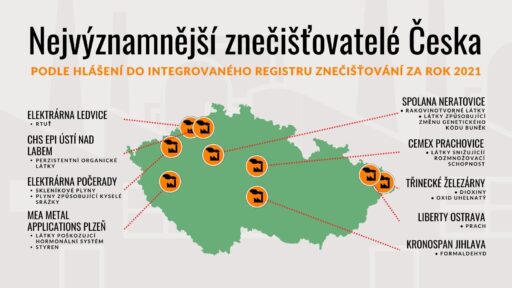 Z uhelných elektráren lze za největší znečišťovatele označit Počerady ze skupiny Sev.en Energy Pavla Tykače a Ledvice. Elektrárna Ledvice patřící ČEZ je také hlavním provozem stojícím za nárůstem emisí rtuti do ovzduší. Spolana Neratovice ze Skupiny Orlen Unipetrol ještě zvýšila množství vypouštěných rakovinotvorných látek. Vedle ní však za růstem vypuštěných látek poškozujících lidské zdraví stojí také cementárna Prachovice (Cemex Czech Republic), která je zároveň „skokanem roku“, protože poprvé ohlásila téměř osm tun rakovinotvorného benzenu vypuštěného do ovzduší.