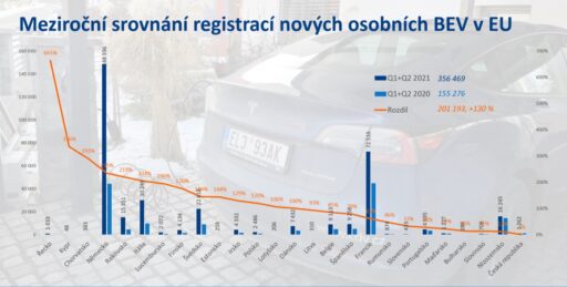 V celé Unii bylo od letošního ledna do června registrováno 356 469 nových elektromobilů, což bylo meziročně o 130 procent více. Nejvíc jich bylo evidováno v Německu, Francii, Itálii, Švédsku a Holandsku. Prakticky ve všech zemích se meziročně počet elektromobilů zvýšil.