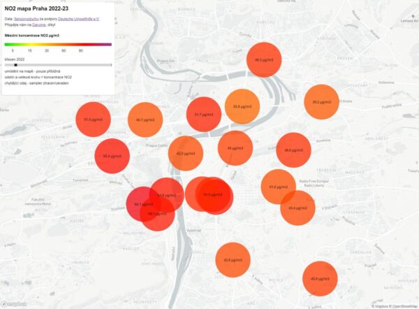 Navzdory opatřením však hodnoty emisí v Praze podle aktuálních měření překračují na řadě míst povolené limity Evropské unie i doporučení Světové zdravotnické organizace. Během minulého roku provedla nezisková organizace Senzor vzduchu plošné měření emisí oxidu dusičitého (NO2) na dvaceti pražských stanovištích. „České zákonné normě 40 mikrogramů na metr krychlový nevyhovělo čtrnáct stanic z dvaceti,“ uvedl k výsledkům Michael Lažan, ředitel spolku Senzor vzduchu.